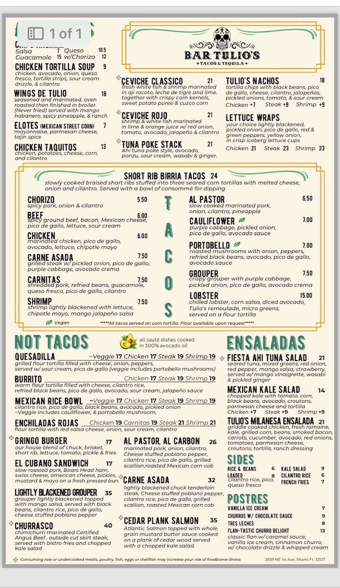 Located in the heart of Miami's Wynwood district, Bar Tulio's presents a vibrant and flavorful menu steeped in Latin-inspired culinary creativity. Guests can indulge in the renowned Short Rib Birria Tacos, where tender, braised short ribs are enveloped in seared corn tortillas, complemented by melted cheese and a rich consomme for dipping—an absolute must for taco lovers.