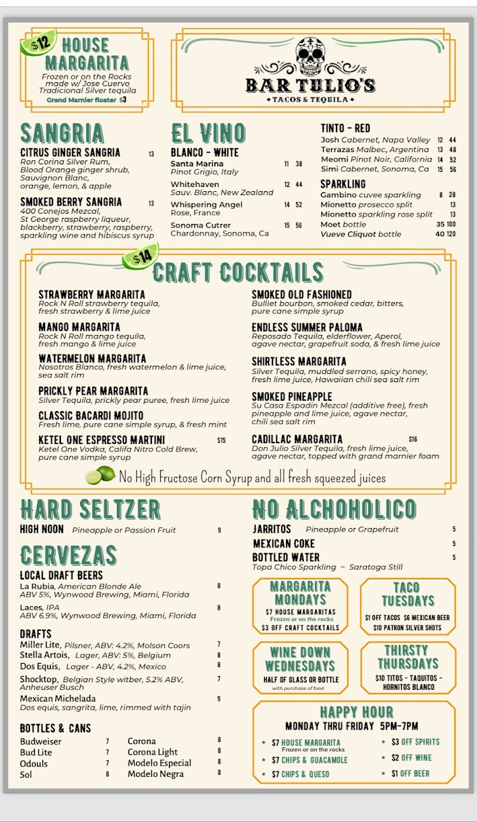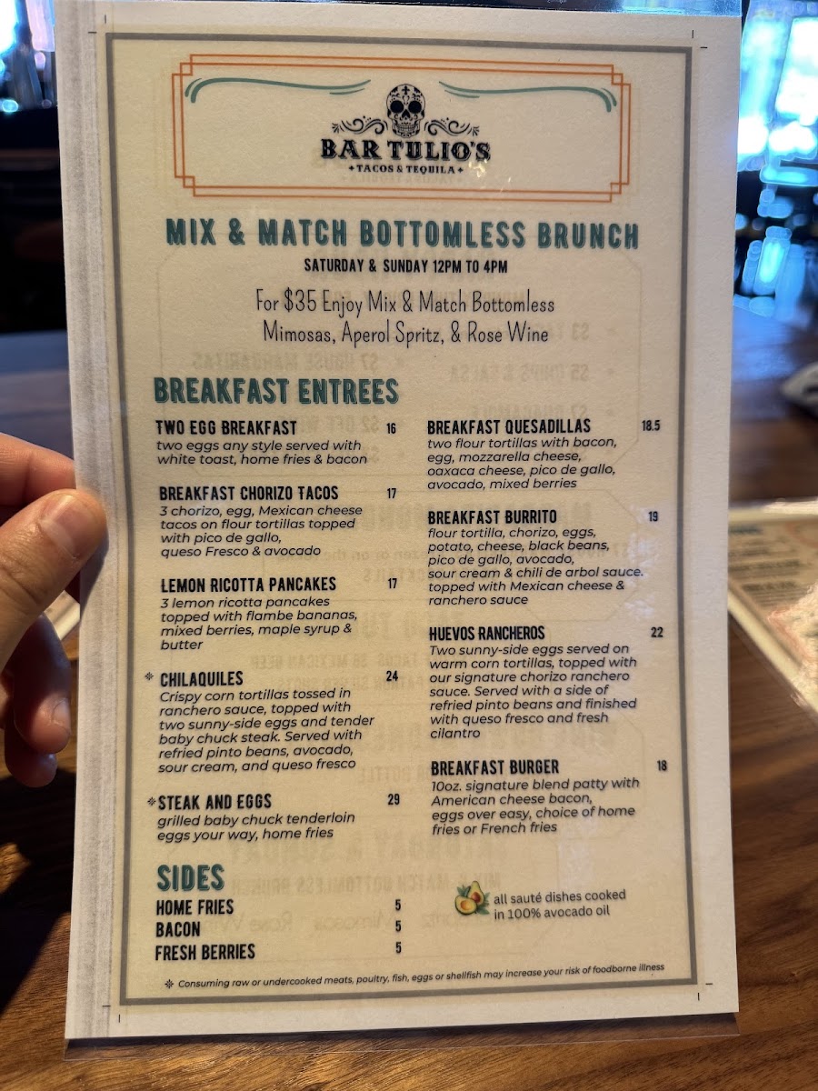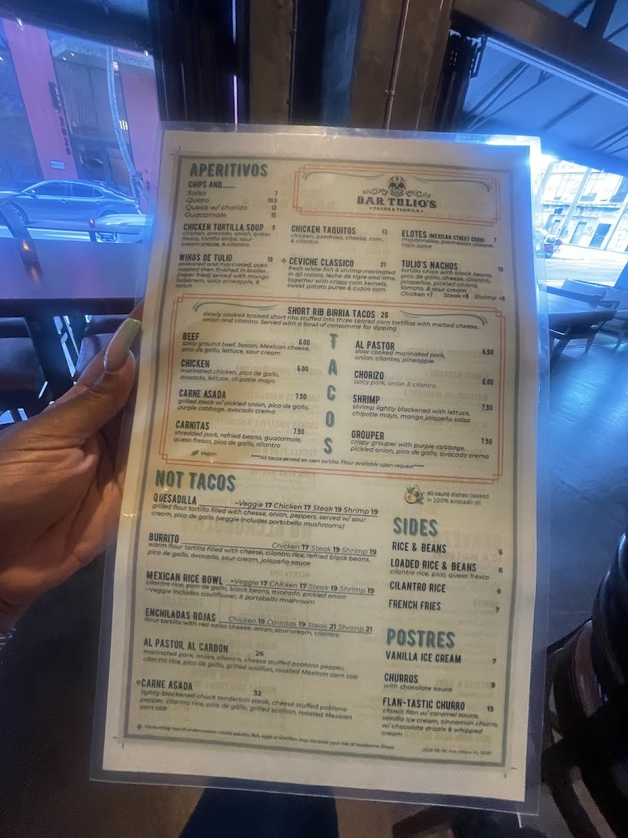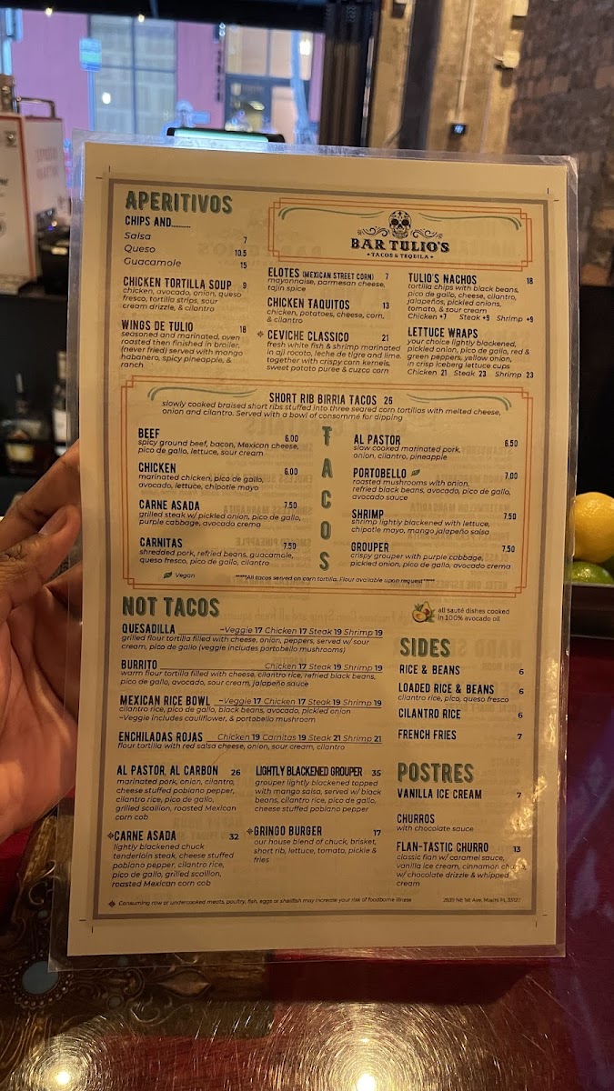 Introducing the Menu at Bar Tulio's